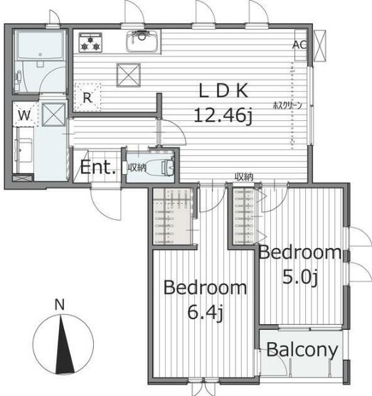 洋室5.0畳 洋室6.4畳 LDK12.46畳